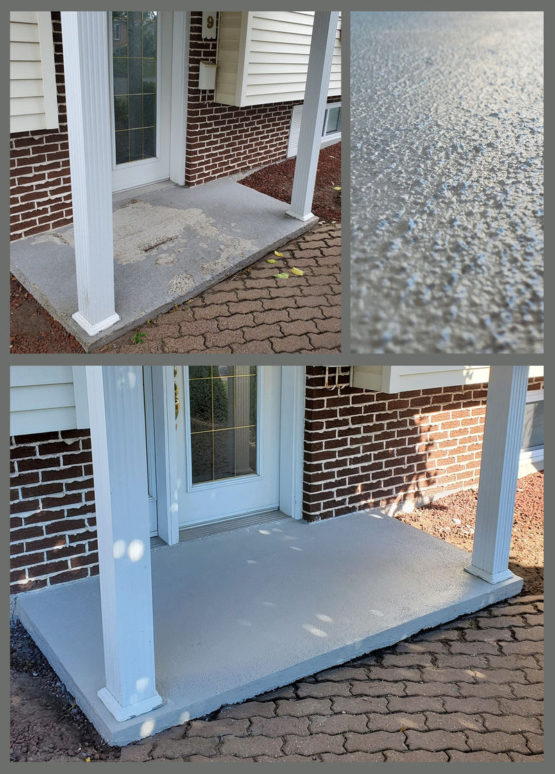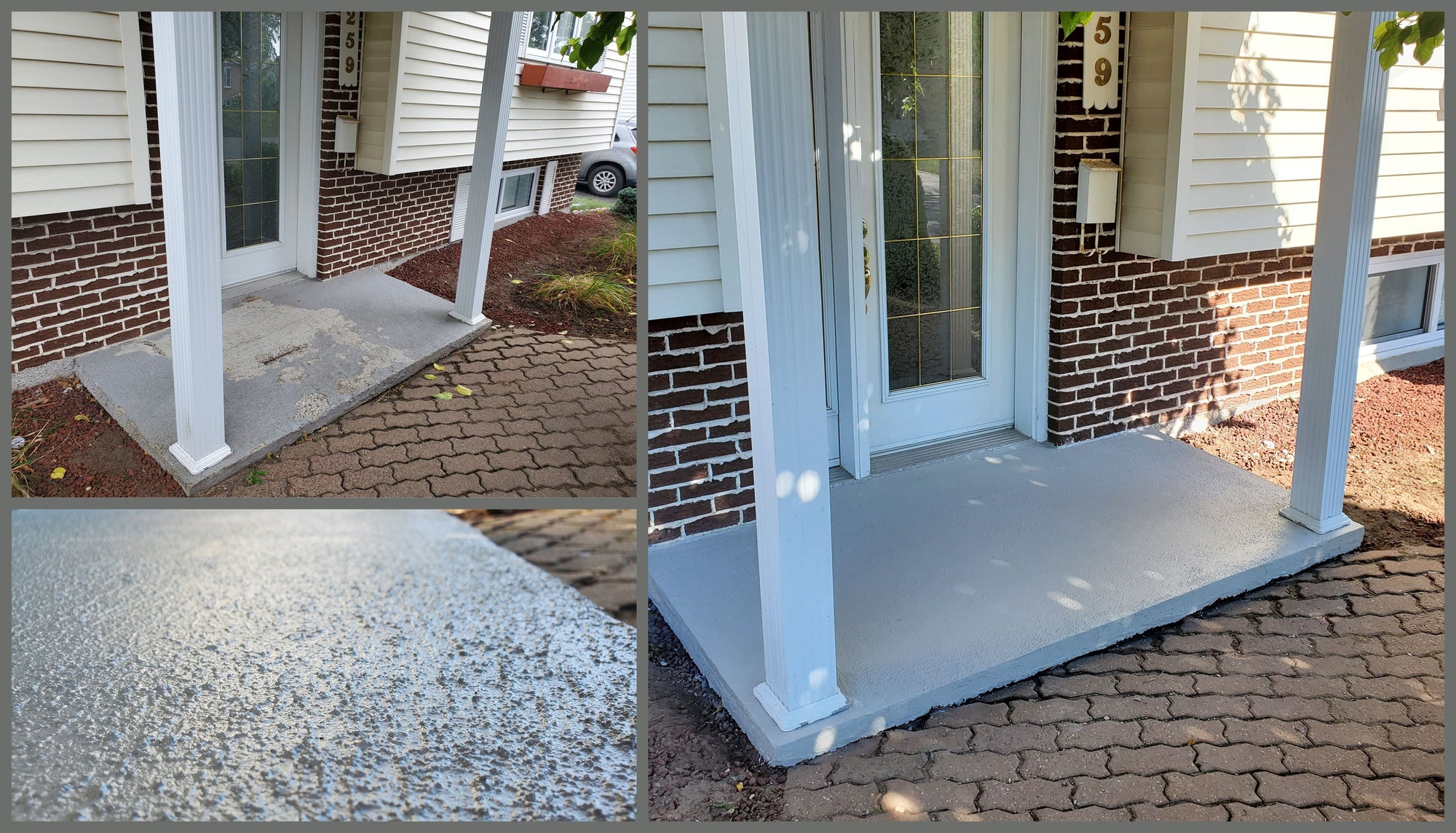 Réparation et application d’un nouveau revêtement antidérapant, pour un perron à la fois solide, sécuritaire et esthétique.